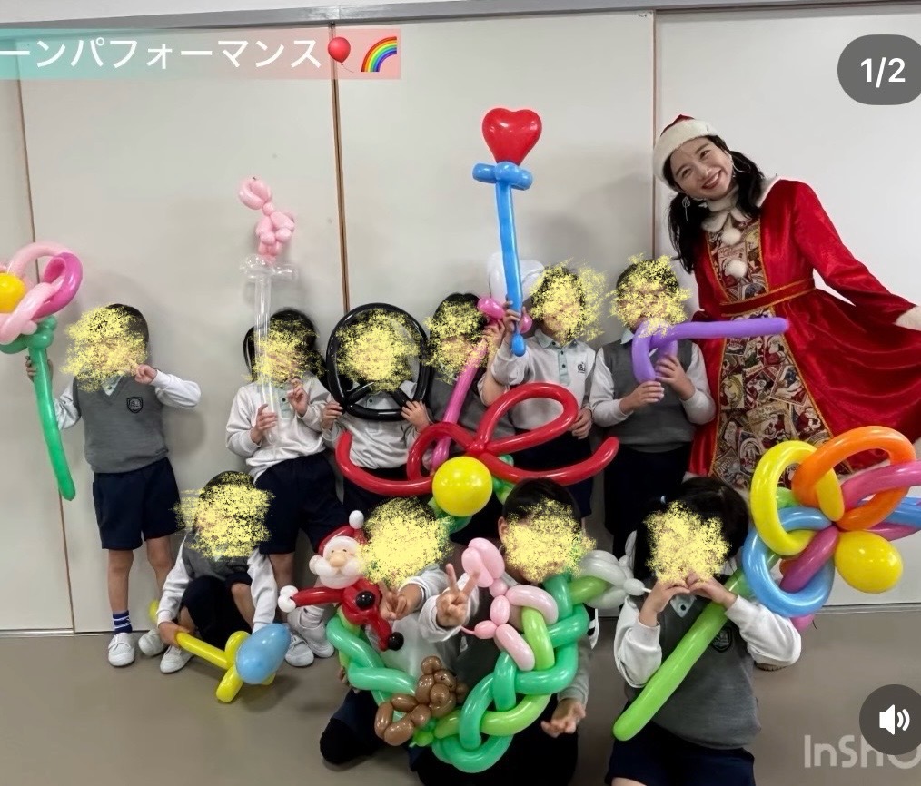(ショッピングモールなどはバルーンを使ったパフォーマンスが相性抜群!バルーンとお歌でお客様を惹きつけます。)